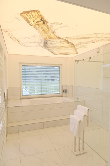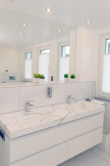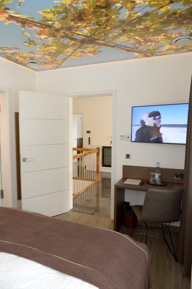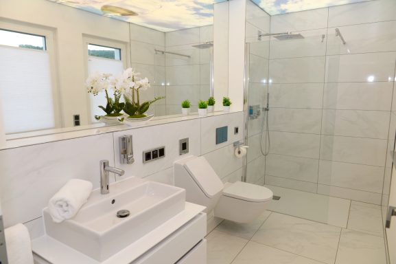 ... mit reichlich Platz, drei geschmackvoll eingerichteten Schlafzimmern und einem großen Badzimmer mit einer Panaroma-Badewanne mit direktem Blick auf Beilstein sowie separater Dusche