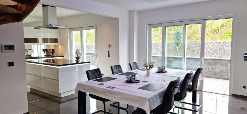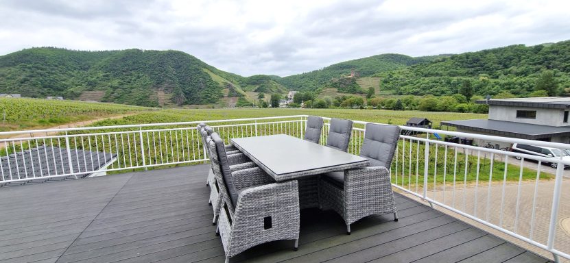 Unser klimatisiertes Ferienhaus bietet Ihnen 5-Sterne-Luxus für höchste Ansprüche, bewertet und klassifiziert durch den Deutschen Toursimusverband DTV - direkt am Weinberg der besten Weine der Region gelegen mit Blick auf Beilstein, einem malerischen und romantischen Dorf. Alle Räumlichkeiten sind selbstverständlich mit elektrischen Rolladen ausgestattet und natürlich steht das Nichtraucherhaus und seine unmittelbare Umgebung für ein gesundes Urlaub- und Erholungserlebnis. Gönnen Sie sich an Sonnentagen auch gerne auf der mehr als ausreichend großen Terasse ein wenig Ruhe und nutzen die Zeit zur Entspannung von Geist und Seele.